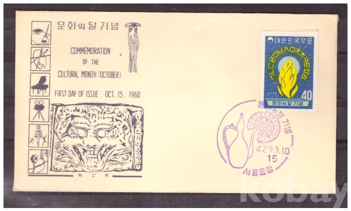 (초일봉피) 1960.10.15 문화의 달 기념 FDC (서울중앙 4293.10.15)