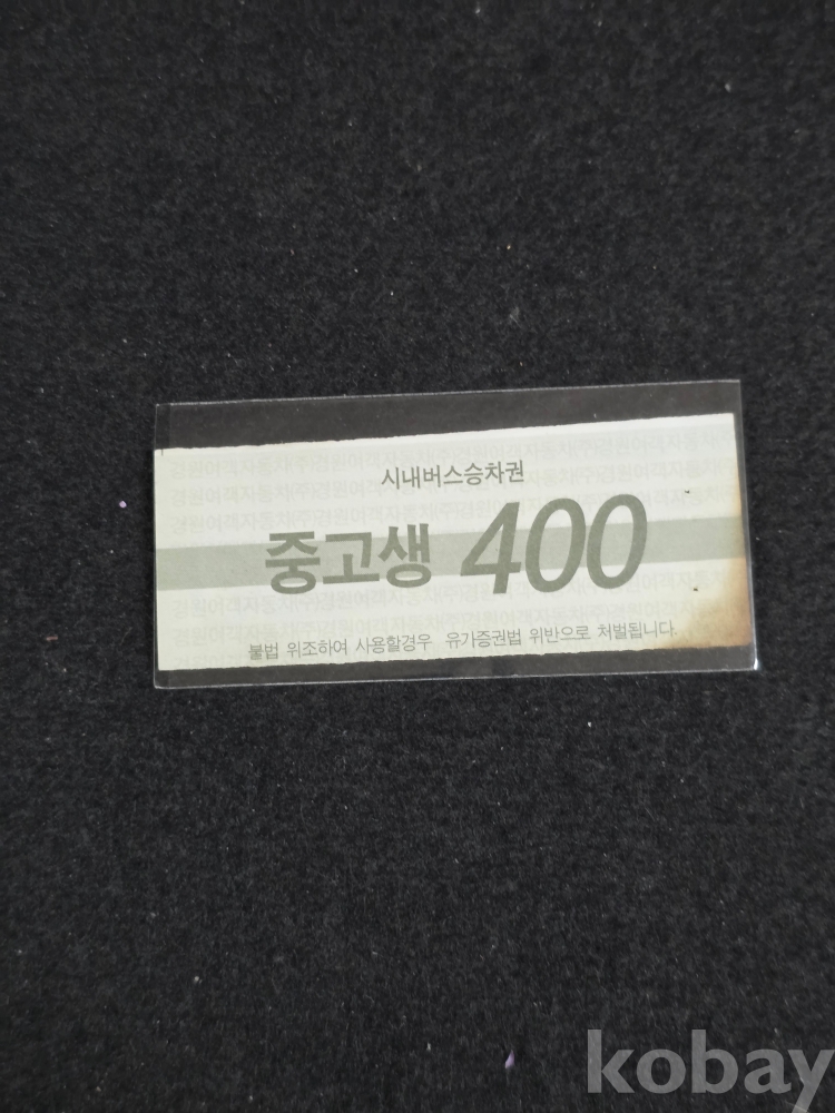 (((근현대사자료/버스승차권))) 오래전 안산 중고생 시내버스 승차권 (400원)