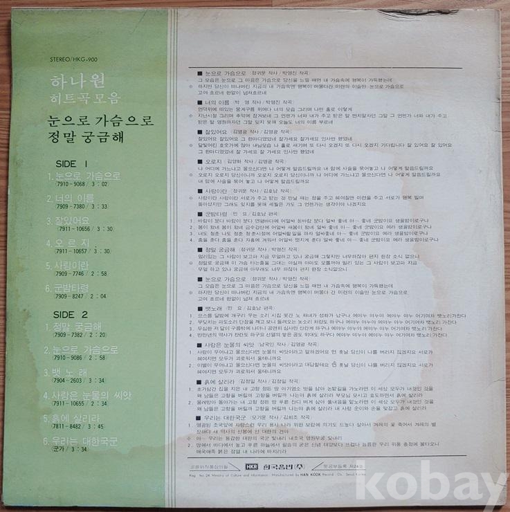 | 자켓상태 | EX : 약간의 마모, 모서리 찢김 존재 | 음반상태 | EX : 재생에 영향 없는 가벼운 기스 존재 | 발매정보 | 초반 | 가사지여부 | 유 |