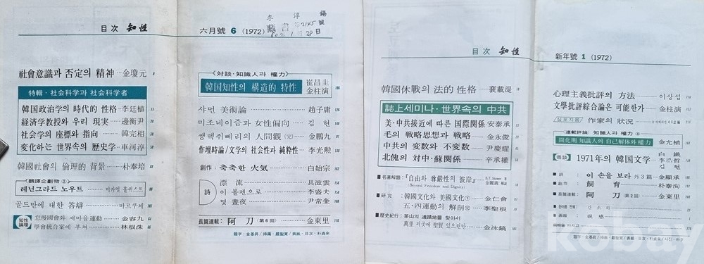 리영희(이용희), 차기벽, 김윤식 등 당대 최고 지성들의 논단 및 비평