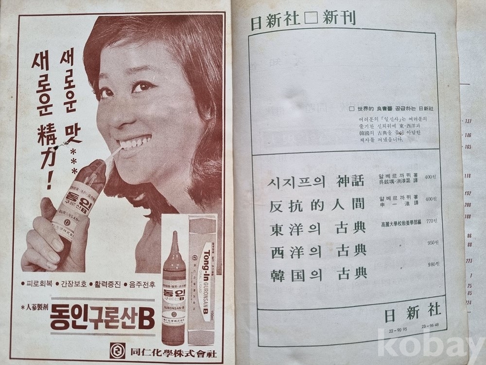 70년대 초반 시대상을 보여주는 광고(동인구론산B 등) 및 화보 수록