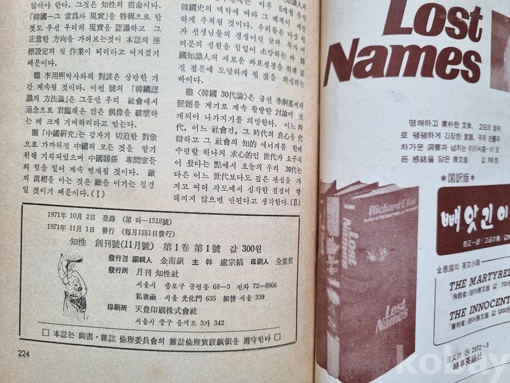 "70년대 한국 현대사와 문학사의 한 페이지를 장식했던 월간 <지성>입니다.