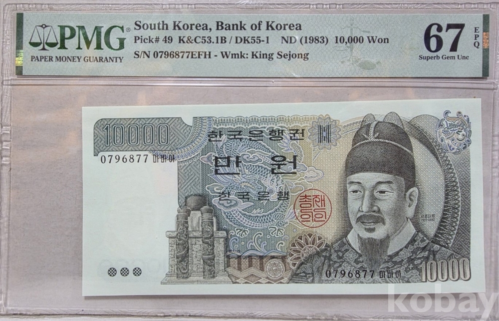 -대한민국 3차 만원 고등급 PMG 67 등급 입니다.