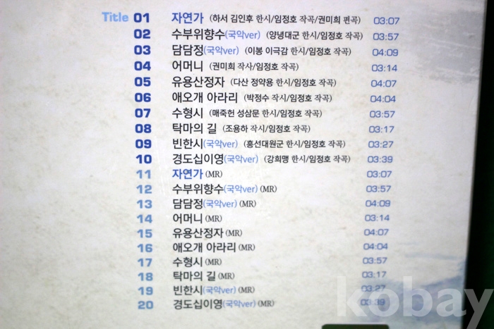 수록 곡 목은 사진을 참조하시기 바랍니다