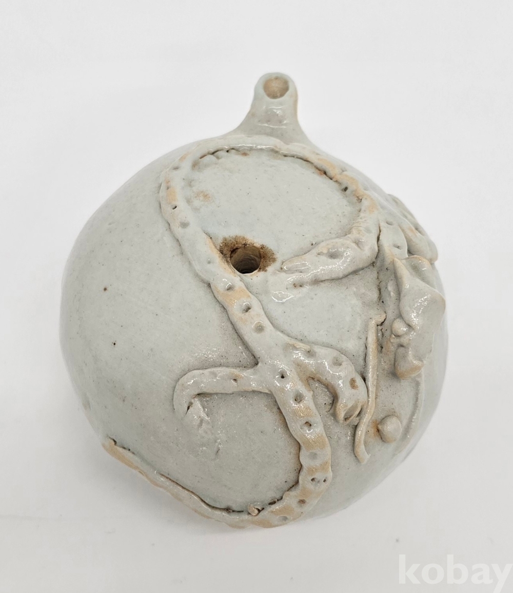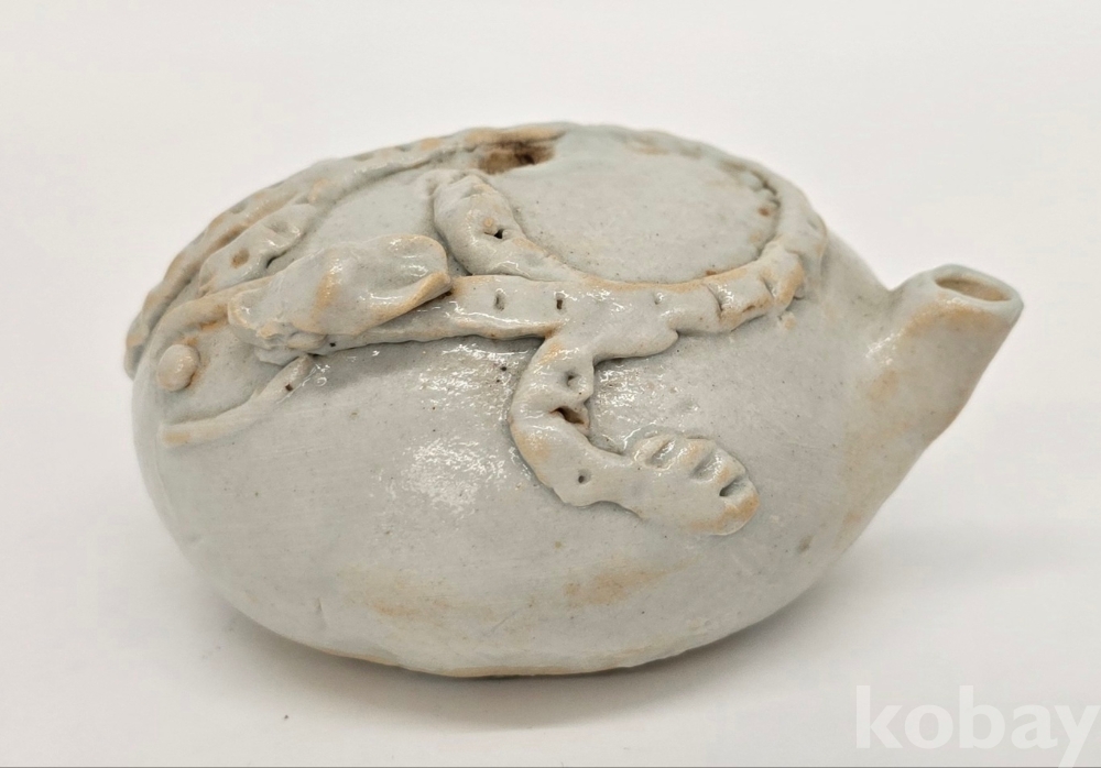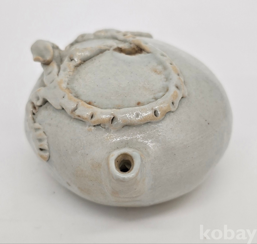 장작가마에서 제작된 작품으로 도롱뇽의 형태가 상당히 선명하며, 굽의 접지면 또한 깔끔하게 닦아내 고급으로 제작한 작품입니다.