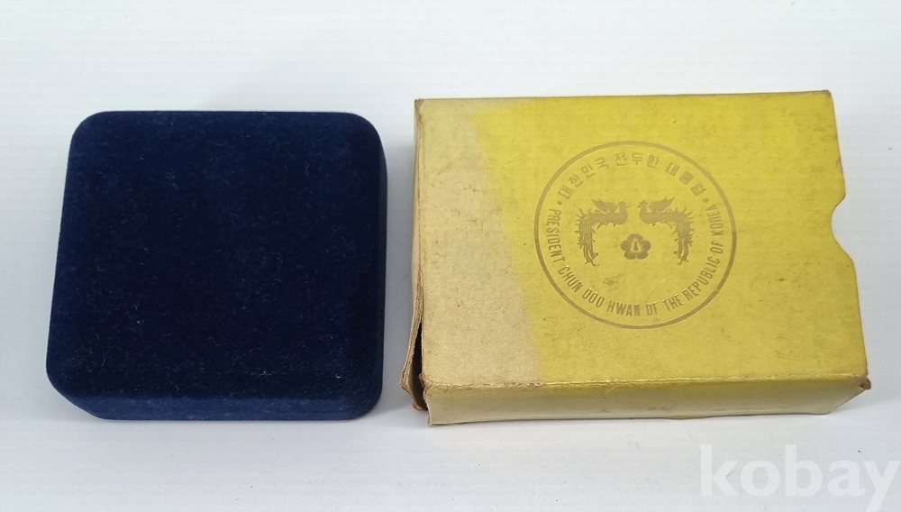 상태: 메달 본체는 보존 상태 양호. 내부 청색 벨벳 케이스 포함. (단, 외부 종이 겉박스는 타 기념품의 박스로 확인됨)