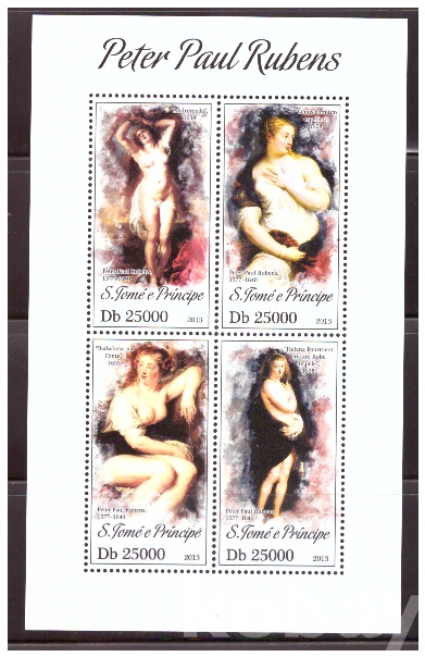 (누드명화) 상투메프린시페 2013 Peter Paul Rubens 누드화 sheet of 4 MNH