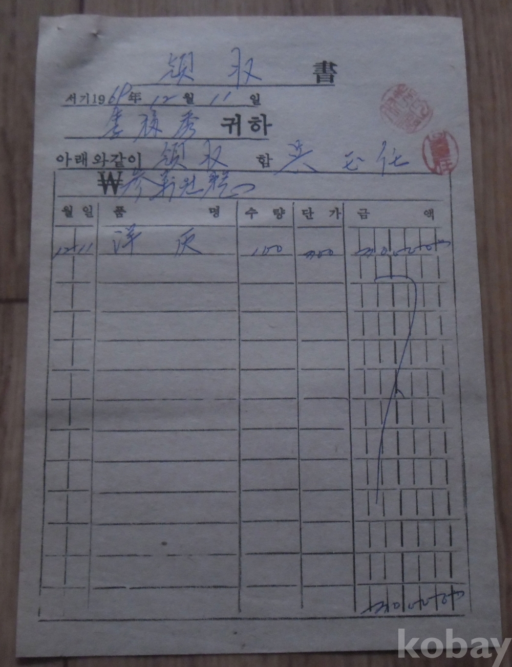 1969년 발행 영수증
