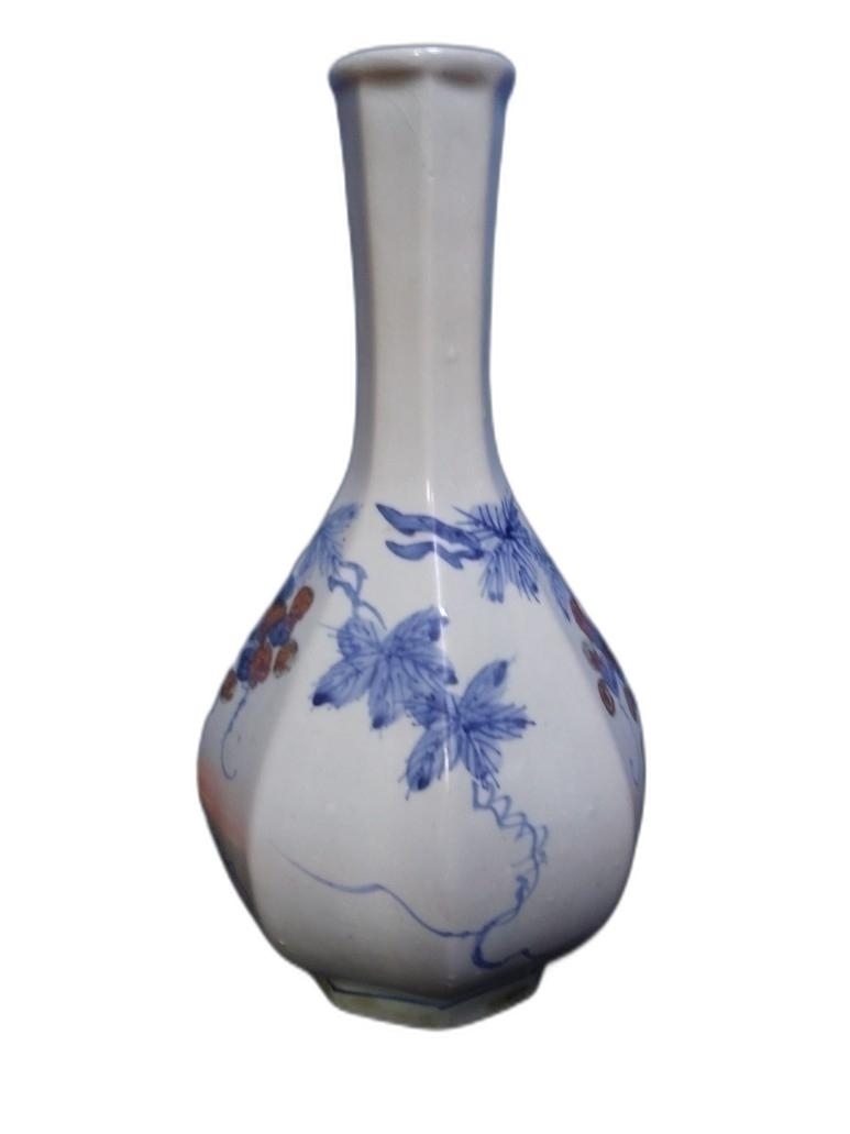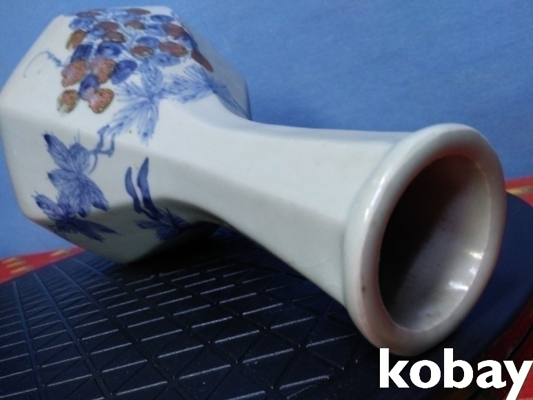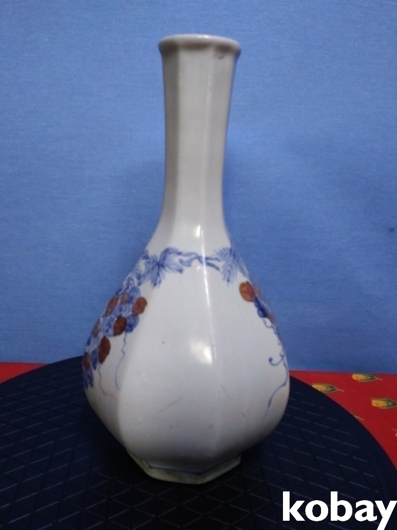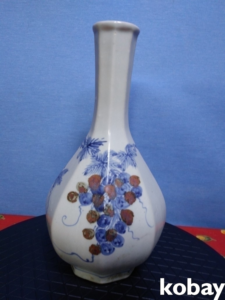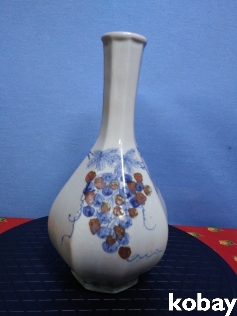 철화 8각 포도 문양이 아름답게 도안된 주병 도자기 입니다.