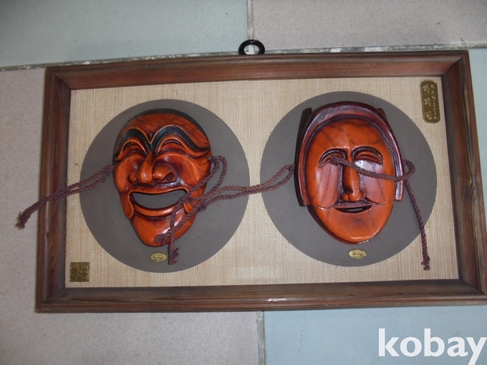 안동 하화탈 공방에서 주장되는 주요탈을 너무잘만들어 액자화한 액운물리치고 흥이나게하는 중요한인물 양반과 부네 국보제121호 하회탈 액자