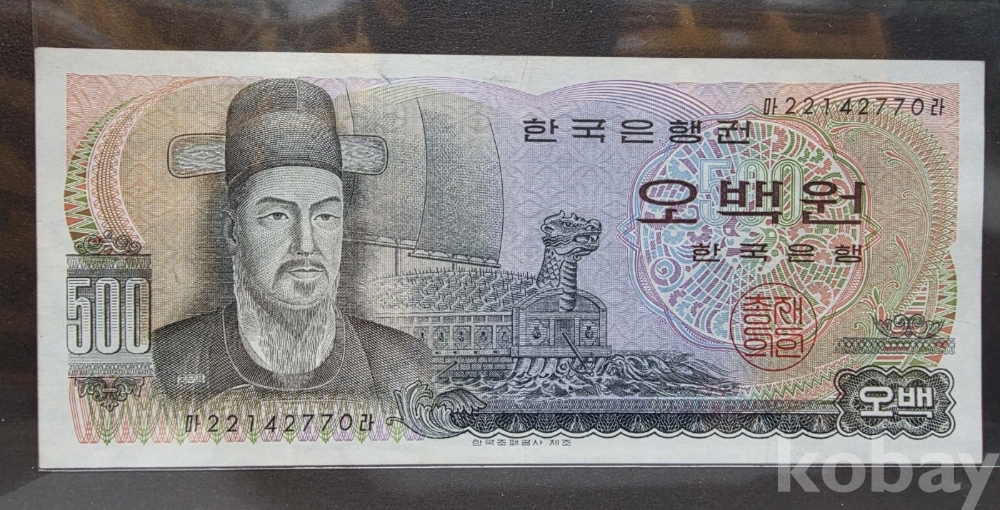 -대한민국 이순신 오백원 사용제 지폐이나 가운데 접힘 빼고는 상태 좋아 보입니다.