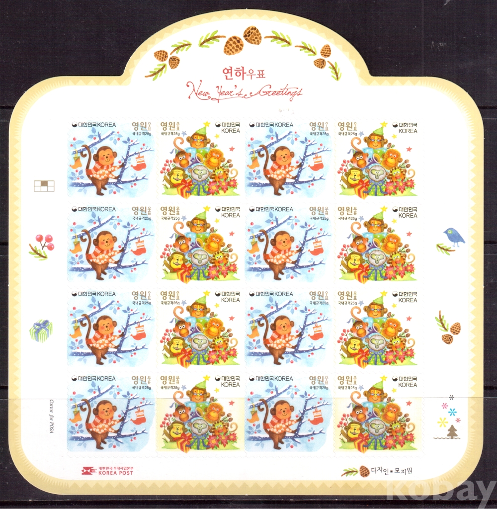 (한국전지) 2015.12.1 연하우표 sheet of 16 MNH