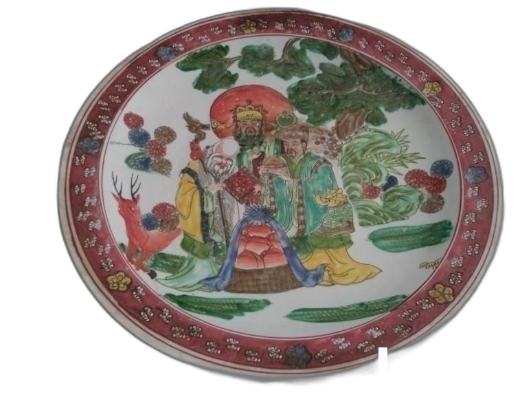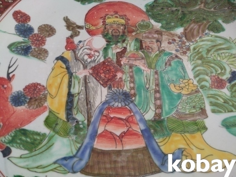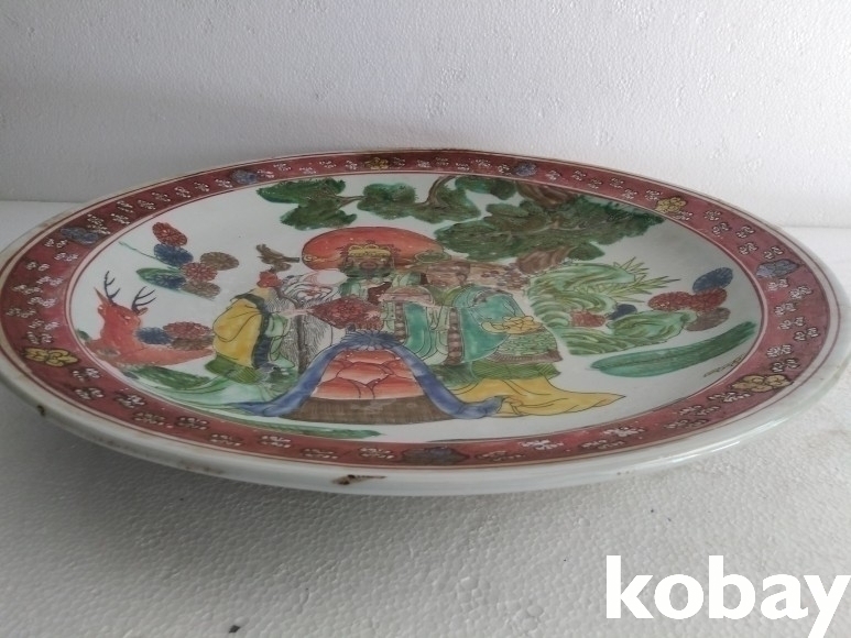 오채색으로 인물도안이 있는 대형 접시 도자기 입니다.