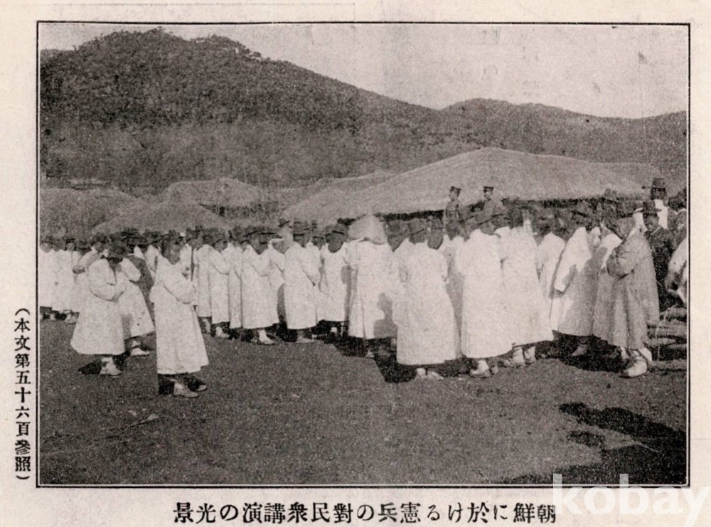 1910-1920년 일본 헌병들이 조선 민중을 모아놓고 강연을 하고