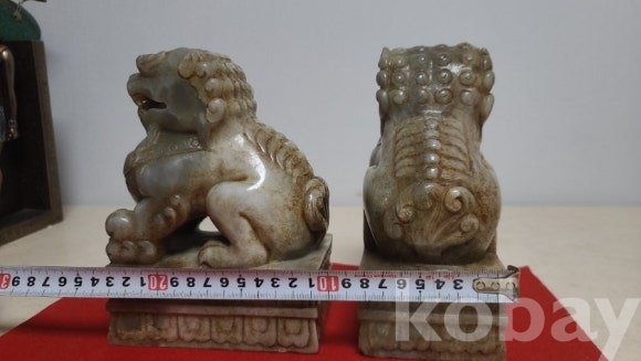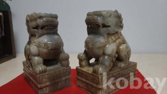 귀한 옥 재질로 해태 한 쌍을 조각한 작품입니다. 조각과 옥질 모두 좋습니다
