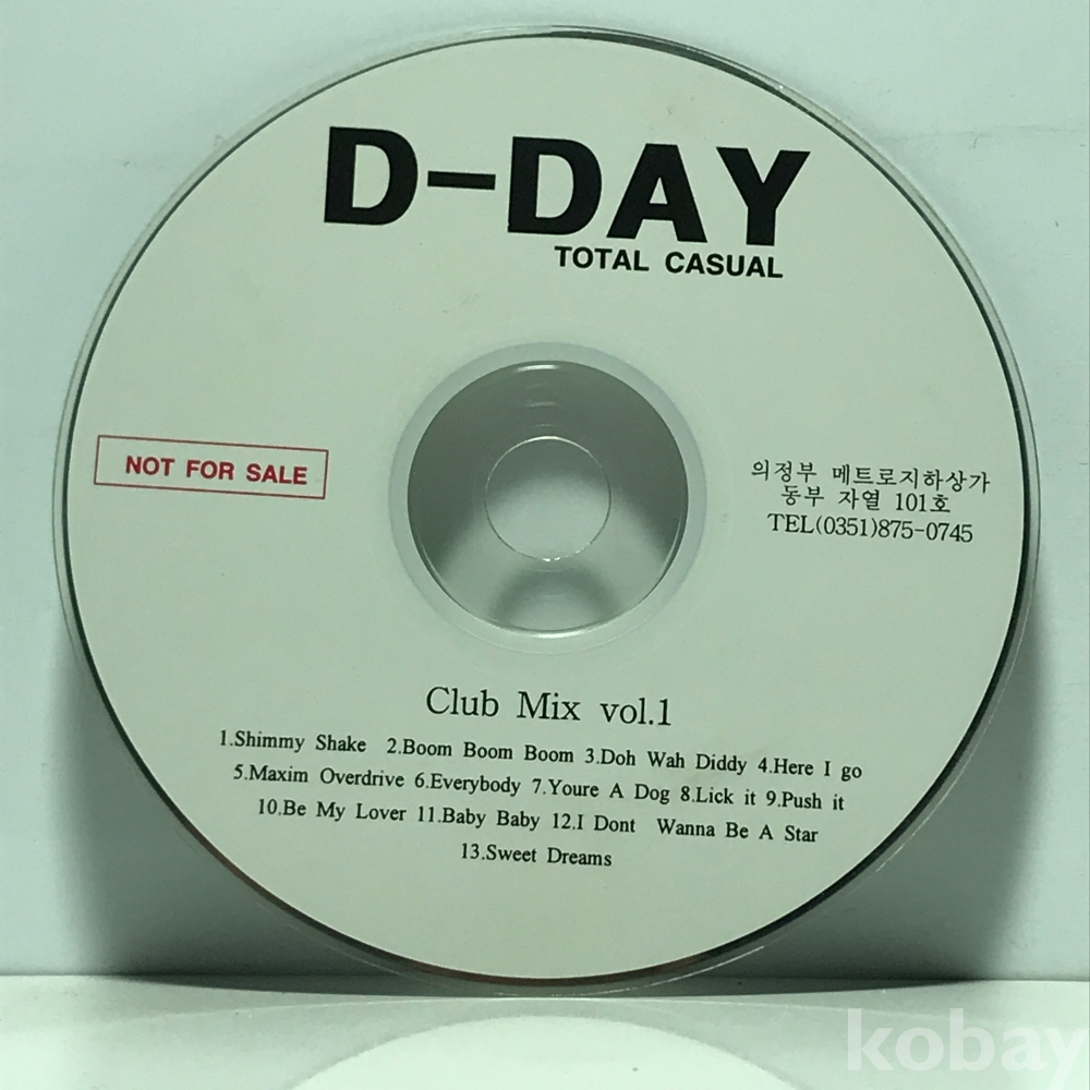 CD 40,100-72 D-DAY TOTAL CASUAL Club Mix vol.1 의정부 지하상가 매장 홍보용으로 제작된 비매품 클럽 믹스 CD입니다. 자켓없음 디스크 : 사용품 잔기스다수/ 튐 가능성