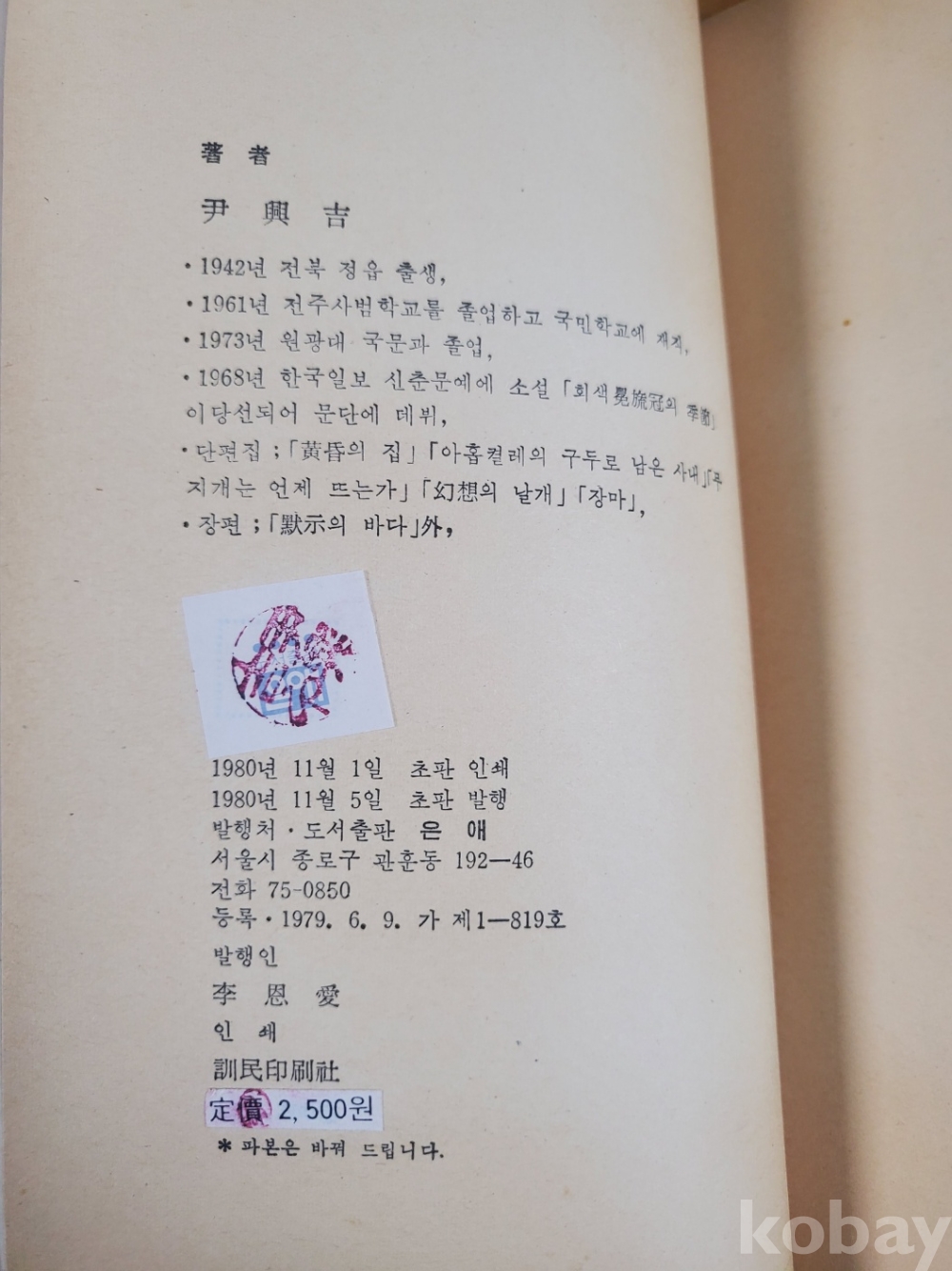1. 순은의 넋, 윤흥길, 도서출판 은애, 1980년, 291쪽, 사진 참조