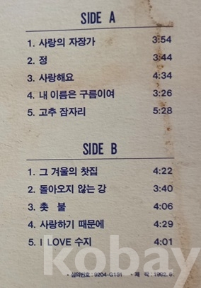 | 자켓상태 | VG : 주름, 접힘, 모서리 찢김 다수 | 음반상태 | EX : 재생에 영향 없는 가벼운 기스 존재 | 발매정보 | 알수없음 | 가사지여부 | 유 |