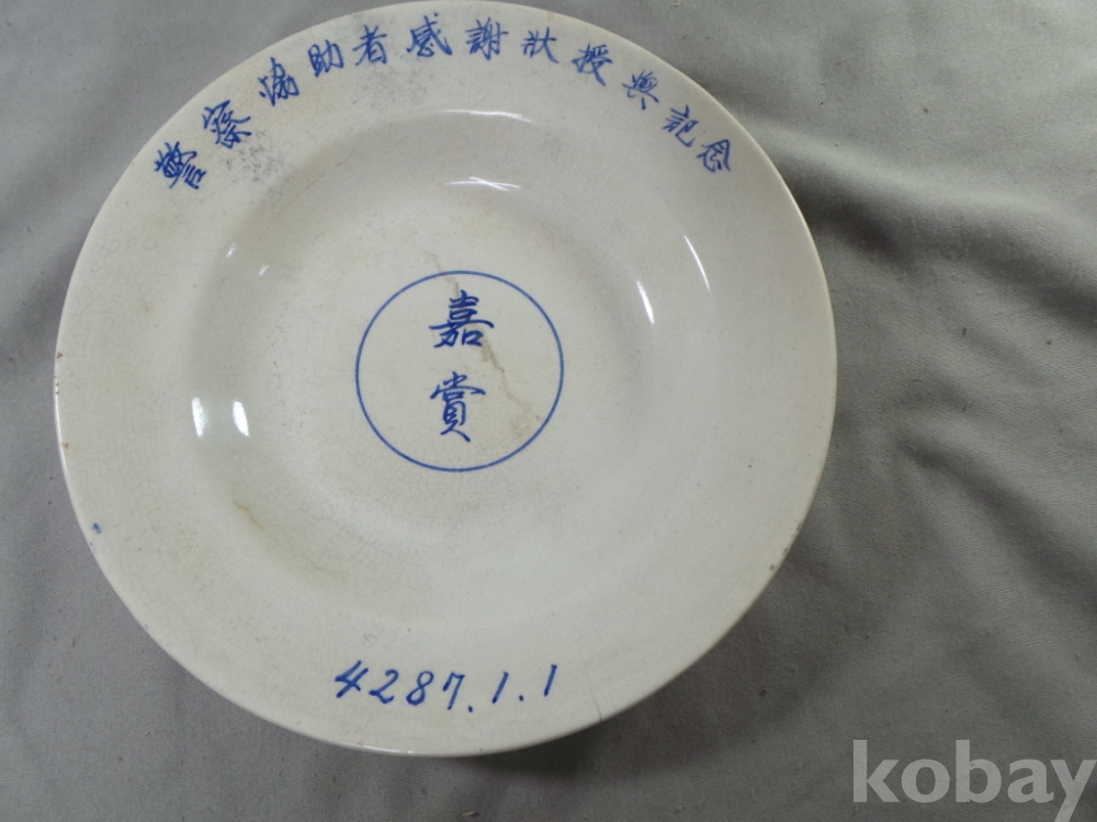 4287년 이라고 청화로 쓰여있는 희귀한 근대사 백자 도자기 접시