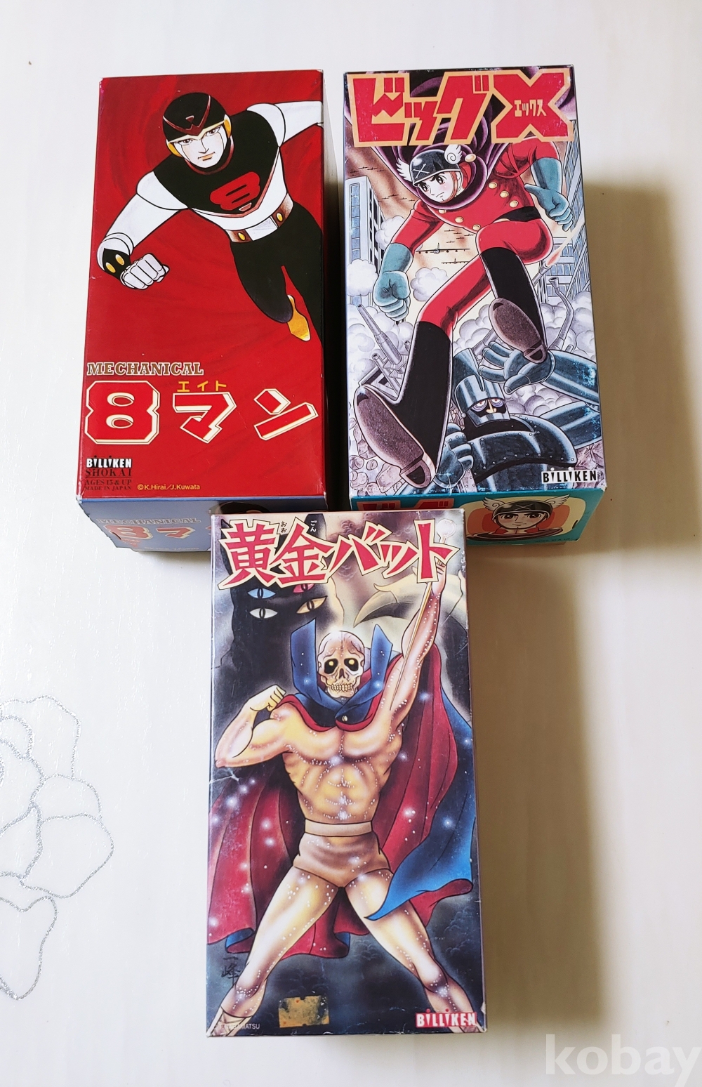 빌리켄 틴토이 고전애니 황금박쥐 에이트맨 빅X 3종세트 입니다