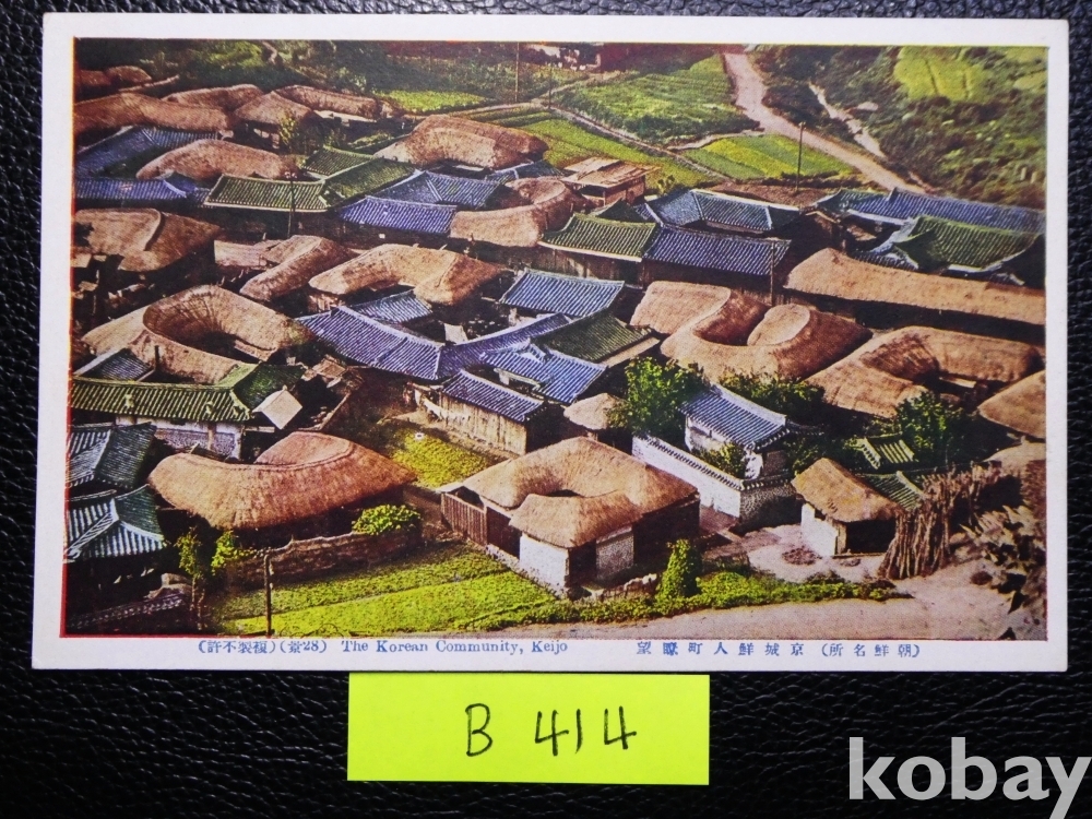 ▣근대한국엽서(진본): 경성 조선인 마을의 전경, 초가집과 기와집이 어우러져 있는 모습, 히노데상행/1매/일제강점기 사진엽서, 그림엽서, 회엽서. B414