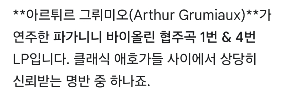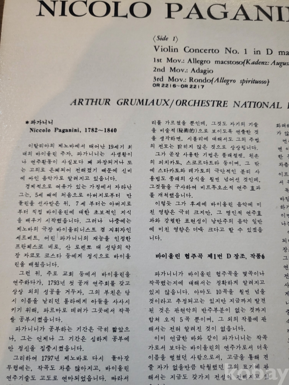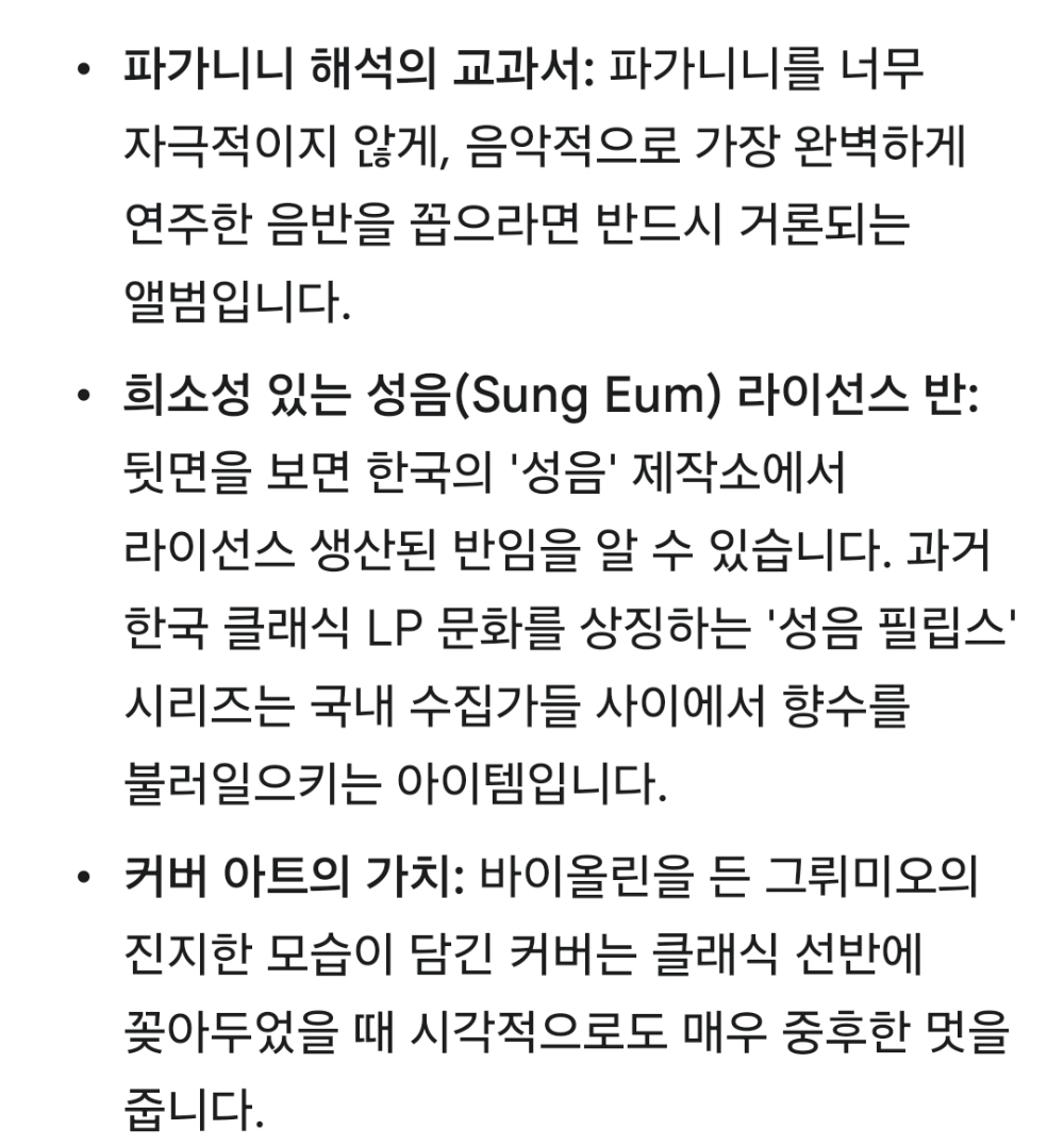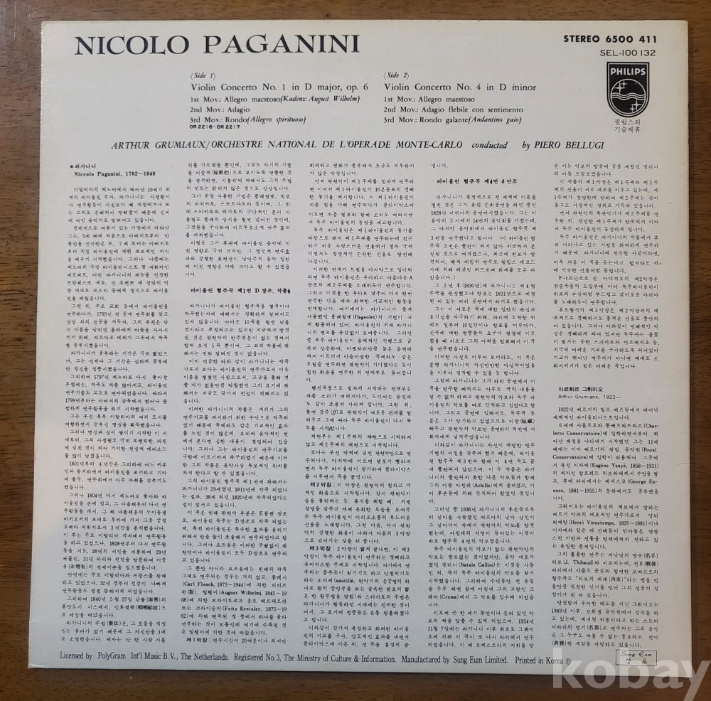 LP(☆단순개봉미사용 ☆) ☆클래식명반 ☆((☆☆그뤼미오(바이올린의 큰별) 의 파가니니 바이올린협주곡 명반☆☆))))☆