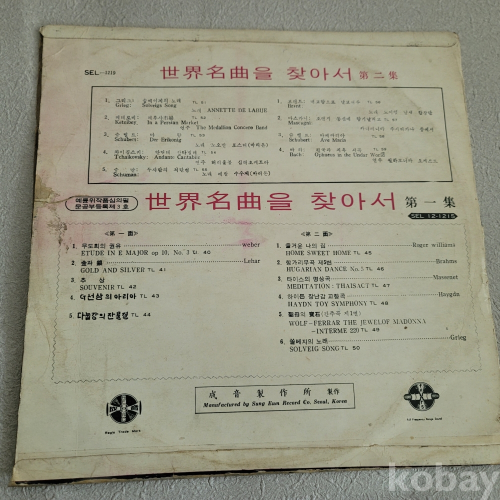 세계명곡을 찾아서 제2집 /내고향으로날보내주.오렌지동산에향기날리고.아베마리아.천국과지옥서곡.