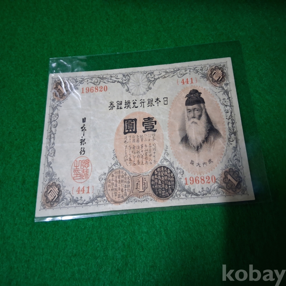 일본 1916년 대정태환권1엔 사용제