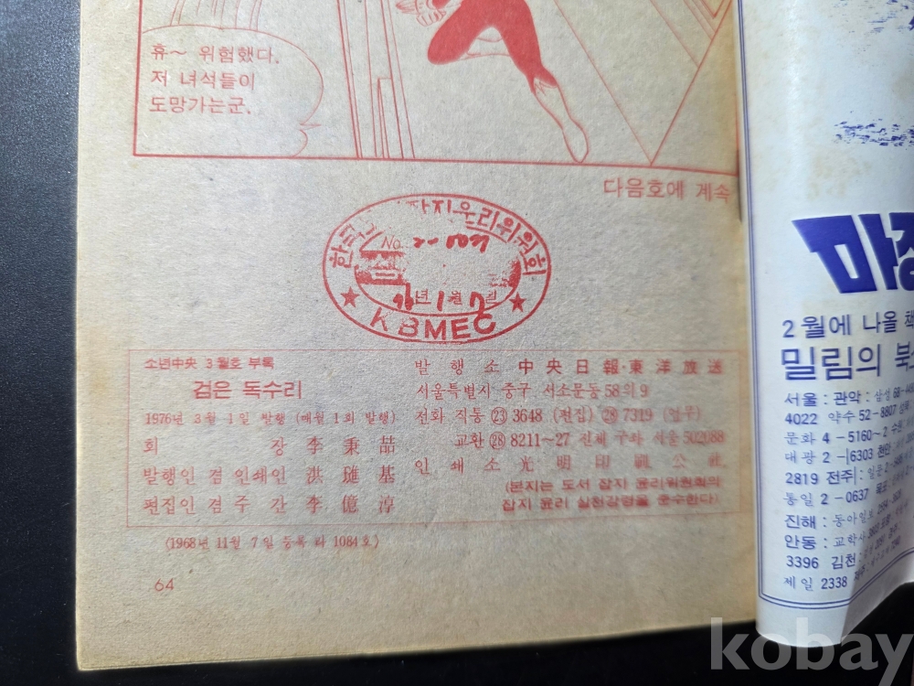 상품명 | 소년중앙 1976년 3월호 부록 '검은 독수리' | ||
