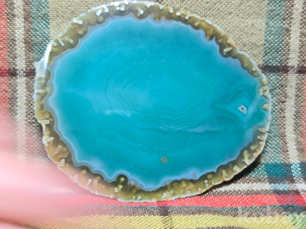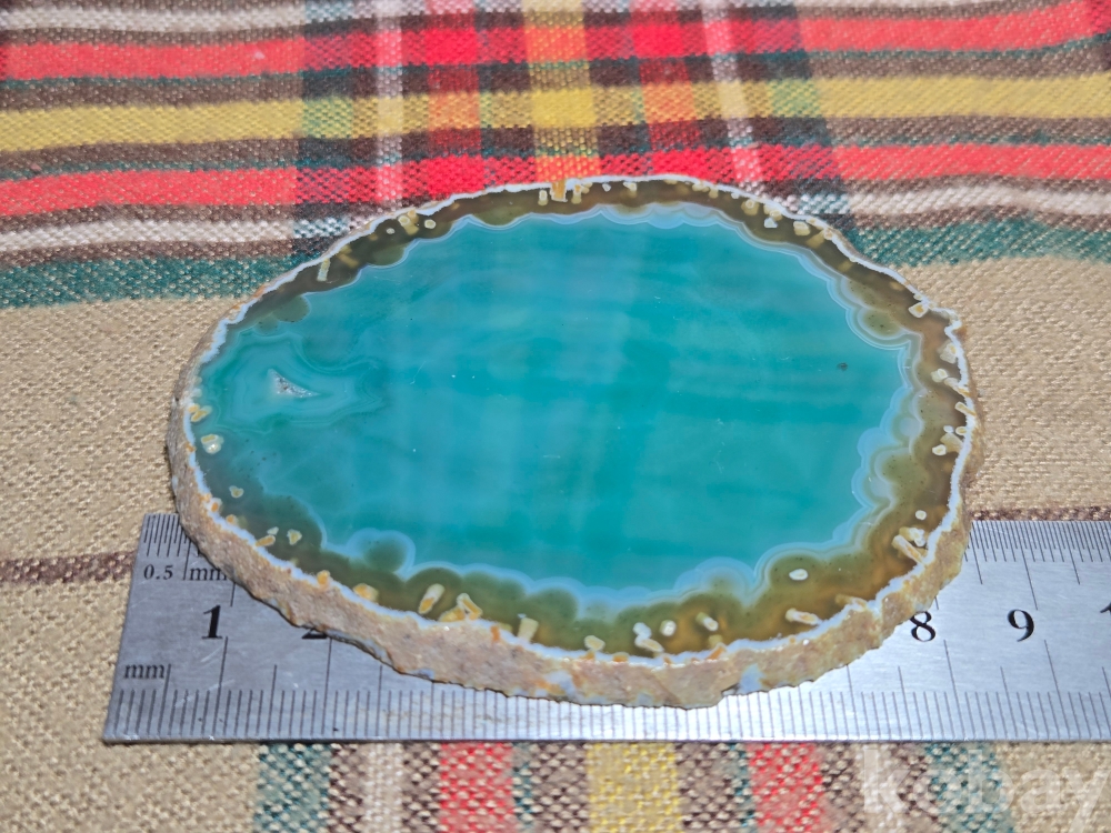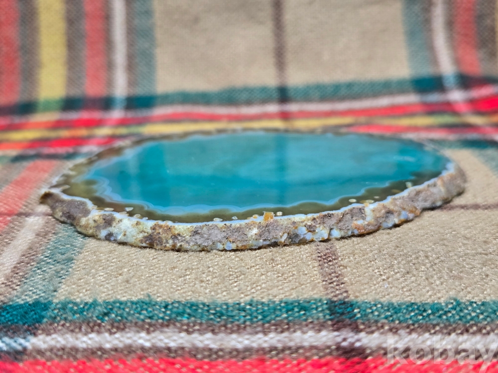 <투킴스> 아름다운 비취빛 마노원석 절단편, 소형 좌대, 차받침