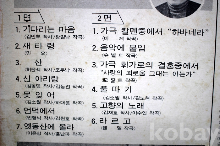 수록 곡 목은 사진을 참조하시기 바랍니다