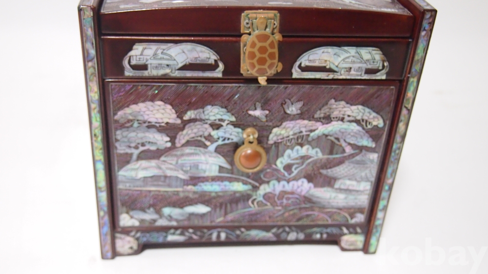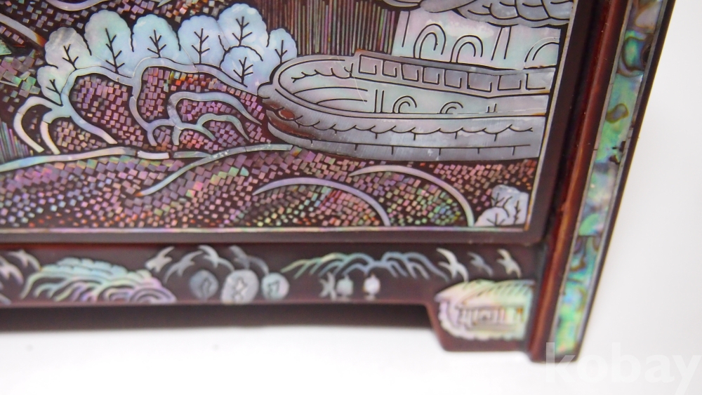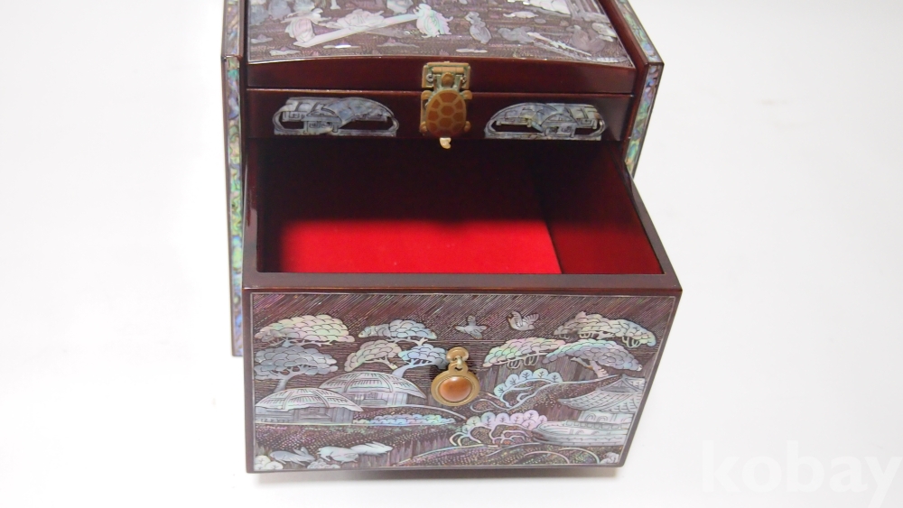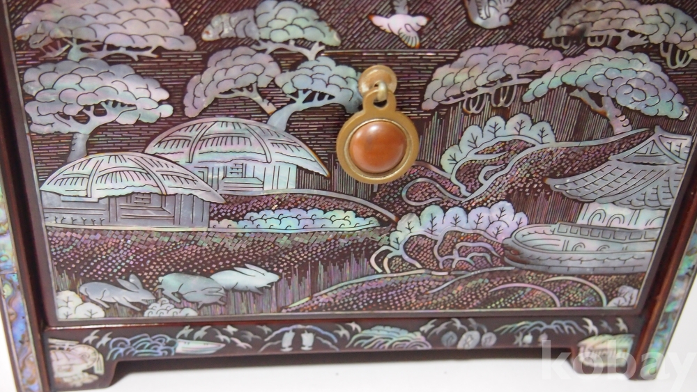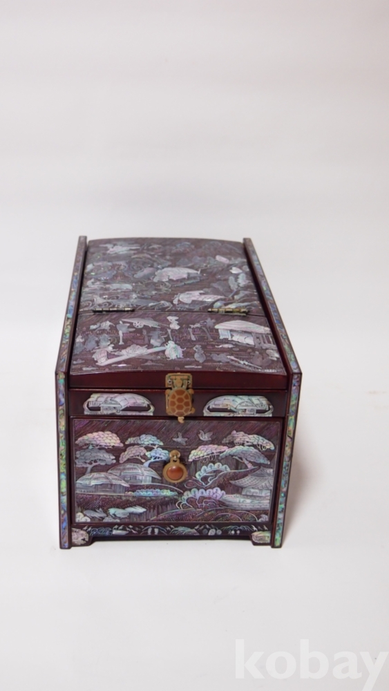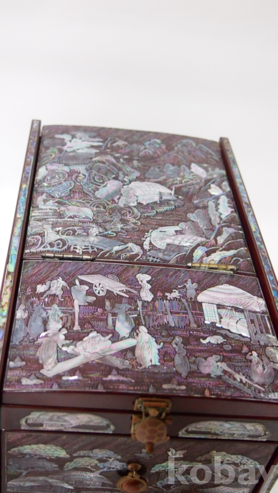 한국의 아름다운 美/ 좌식, 산수화 농경도 문양, 나전(자개)칠기 서랍 경대/고급 제품, 실사용 가능입니다.
