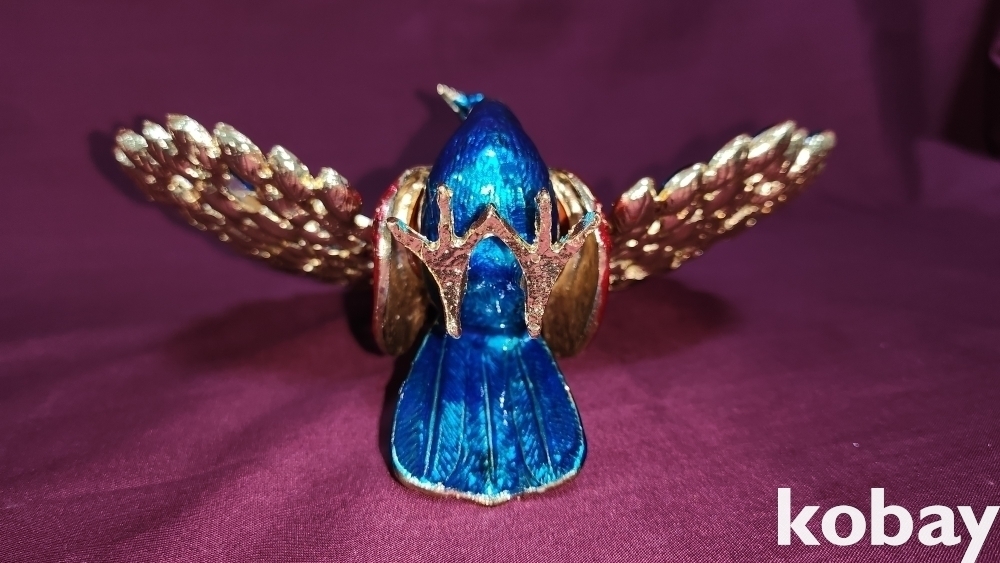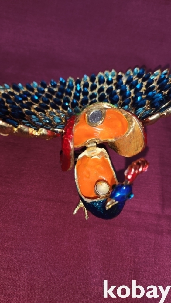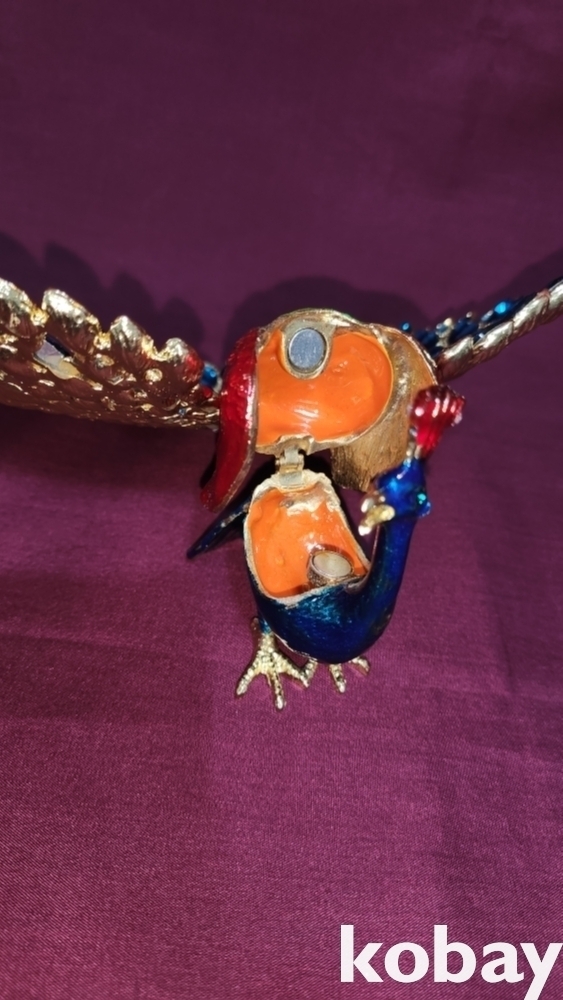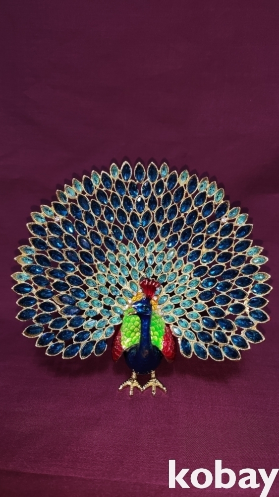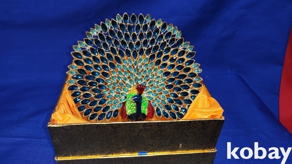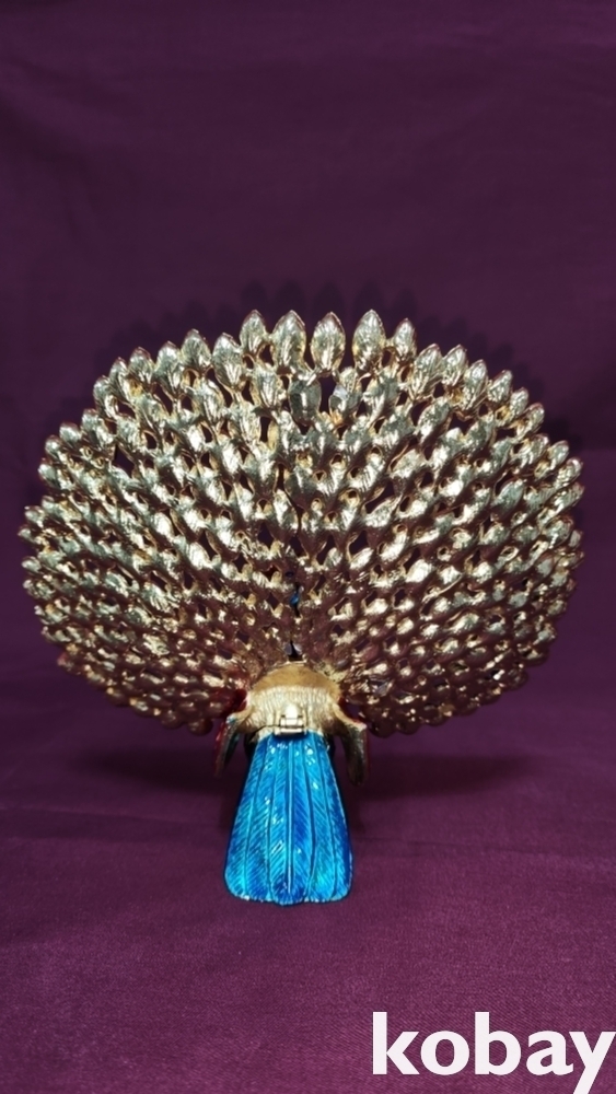 황동으로 완성된 공작새 형상 미사용 보석함입니다