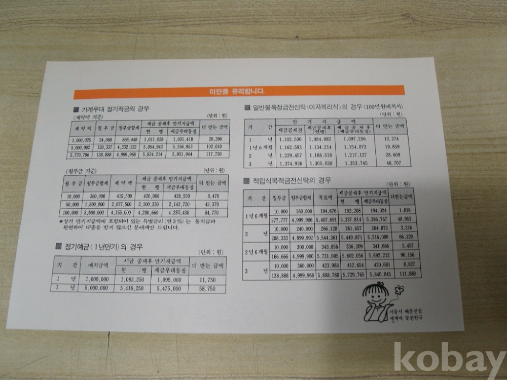 80-90년대 상업은행전단지,,,,,세금우대 한아름 통장,,,,87년