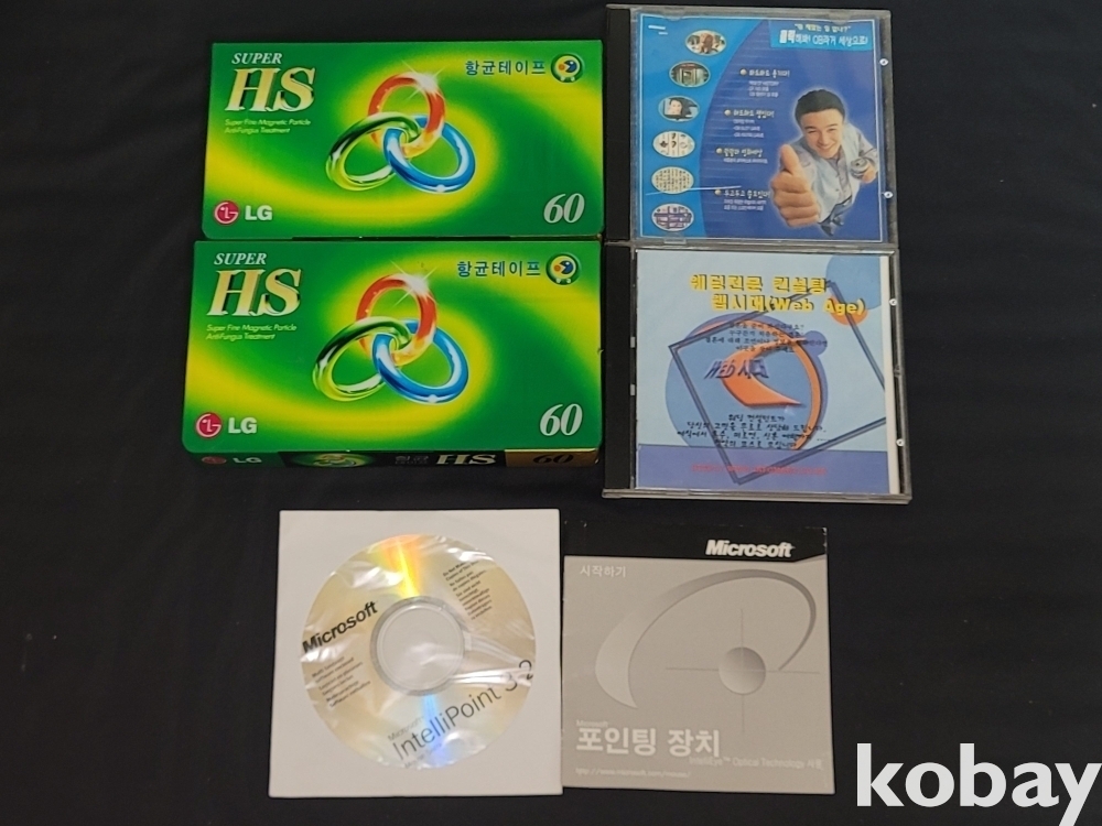 빈티지 미개봉 LG 비디오 공테이프 2종과 OB라거, 웹시대 CD 등 일괄입니다.