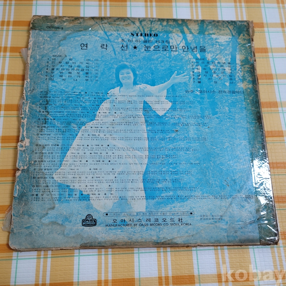 | 자켓상태 | VG : 주름, 접힘, 모서리 찢김 다수 | 음반상태 | EX : 재생에 영향 없는 가벼운 기스 존재 | 발매정보 | 알수없음 | 가사지여부 | 무 |