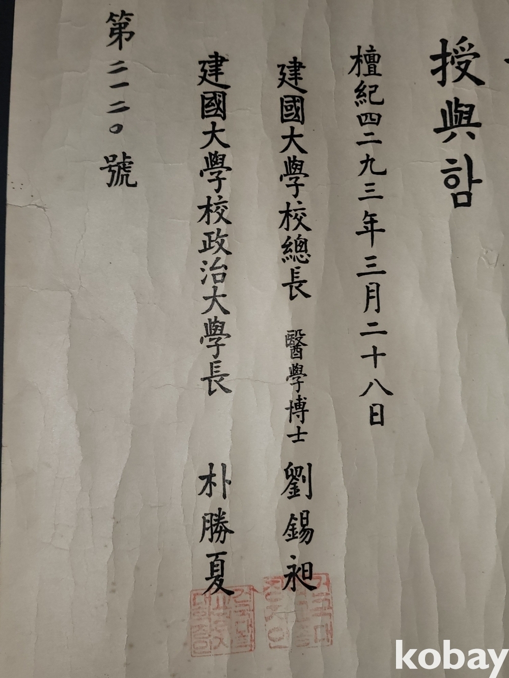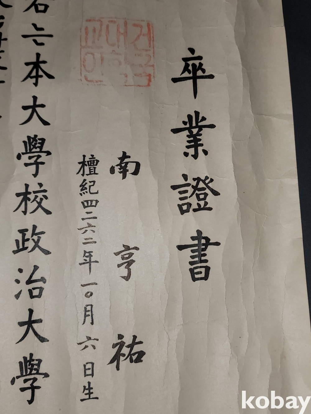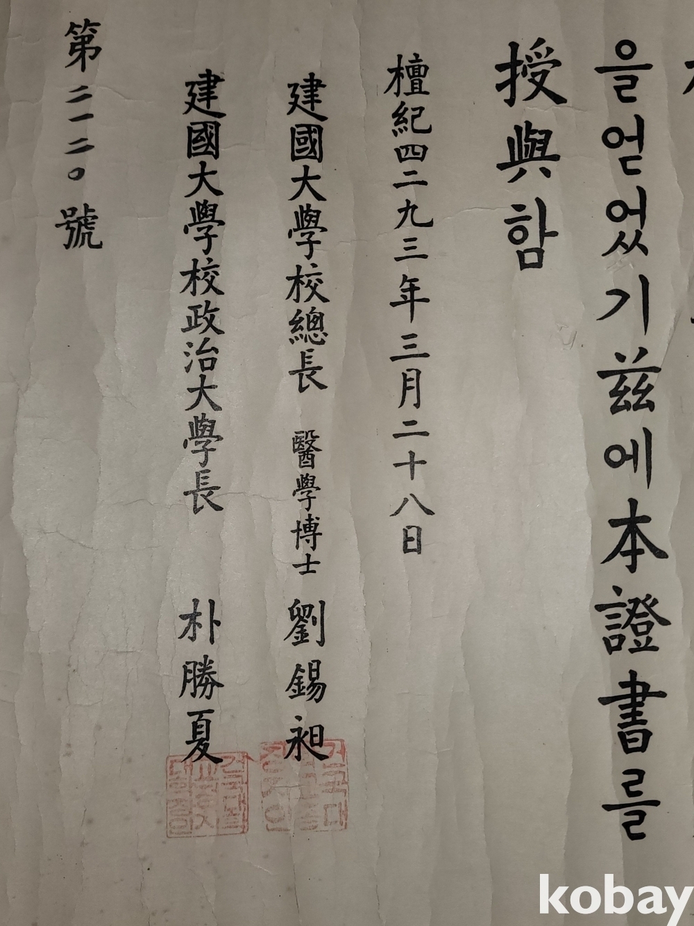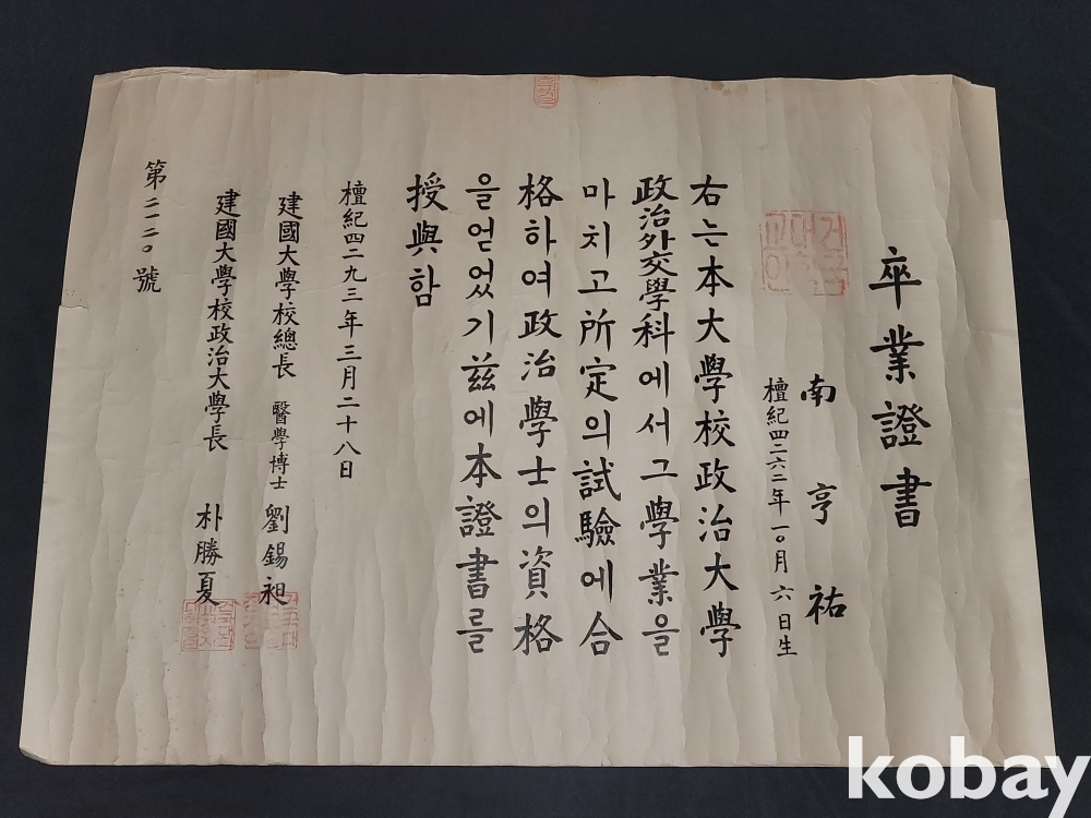 빈티지 세월 감이 느껴지는 희귀한 1960년도 건국대학교 정치학과 졸업증명서입니다.