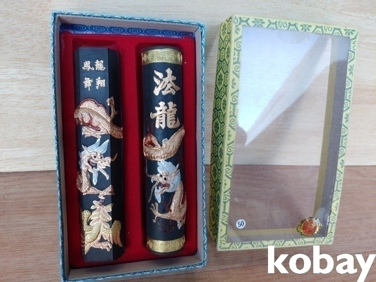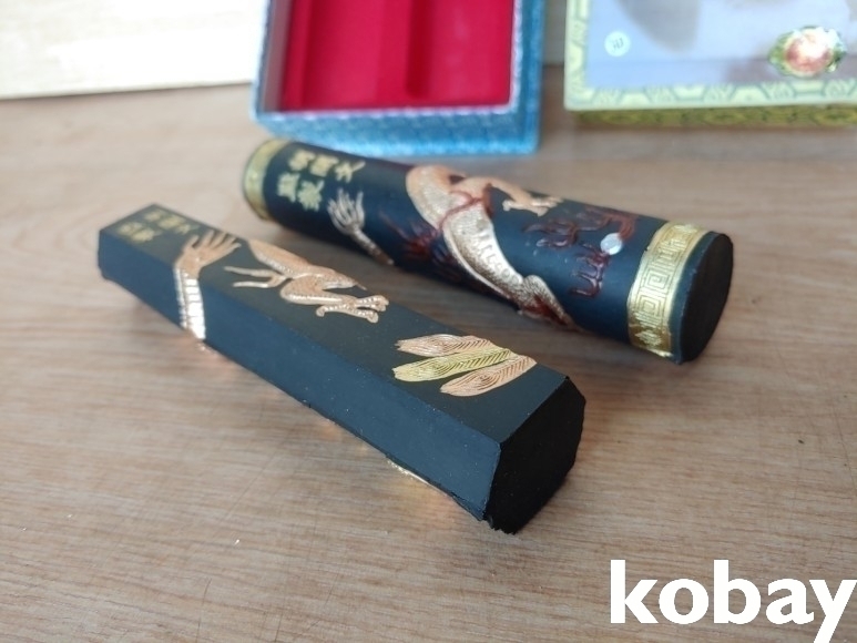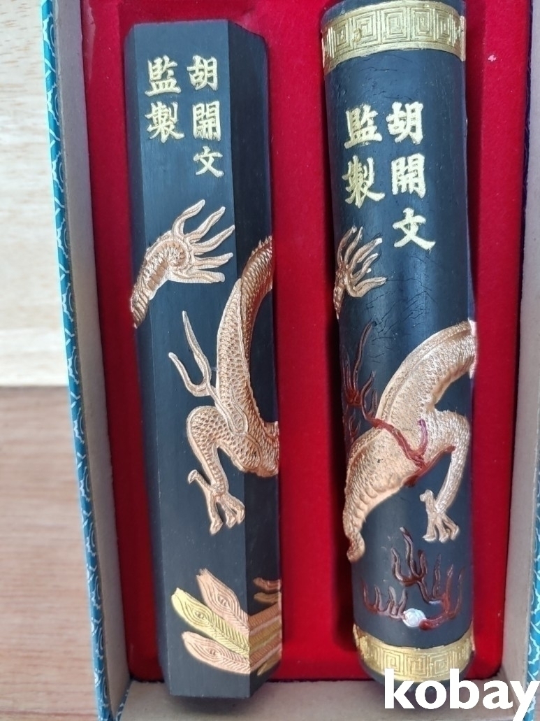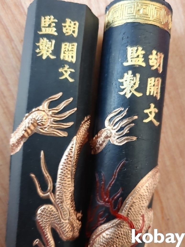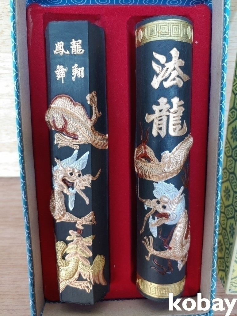 금분칠의 용이 휘감고 있는 먹 입니다.