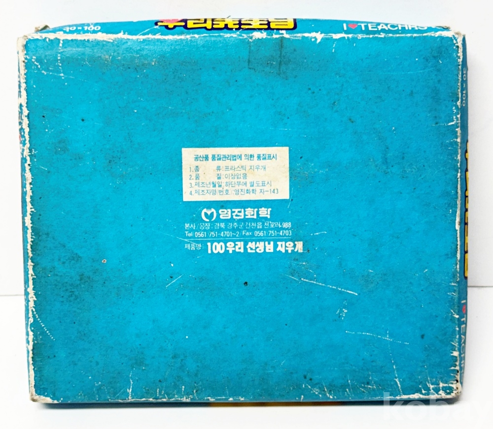 상품설명 | 영진화학에서 생산된 빈티지 지우개로, 1박스 15개입으로 구성되어 있다. | ||