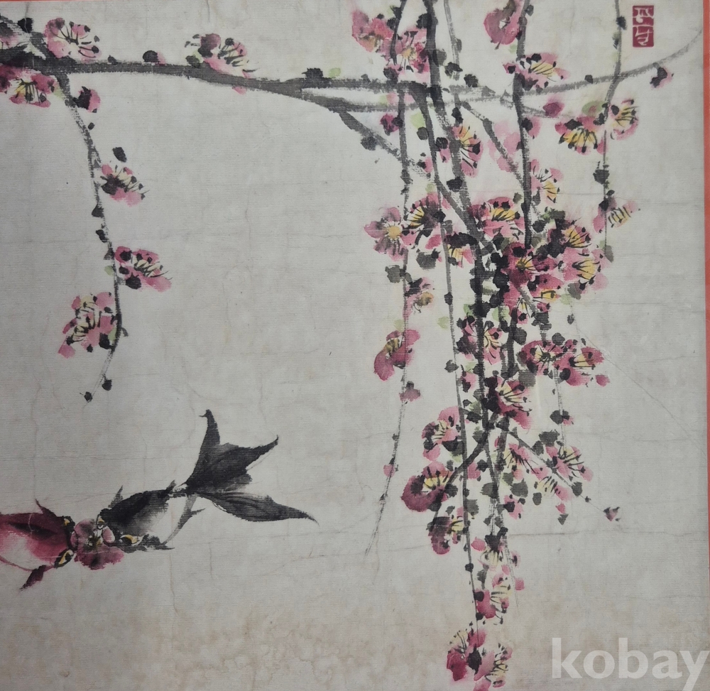 부부(또는 연인)을 상징하는 금붕어 한쌍이 홍매화 아래에서 애정을 표현하는 아름다운 작품'이오니 작