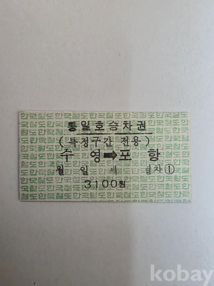 통일호 에드몬슨 승차권입니다
