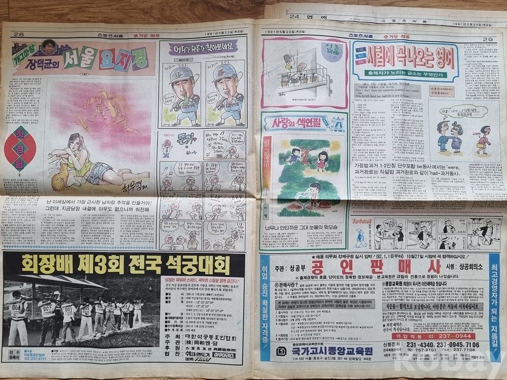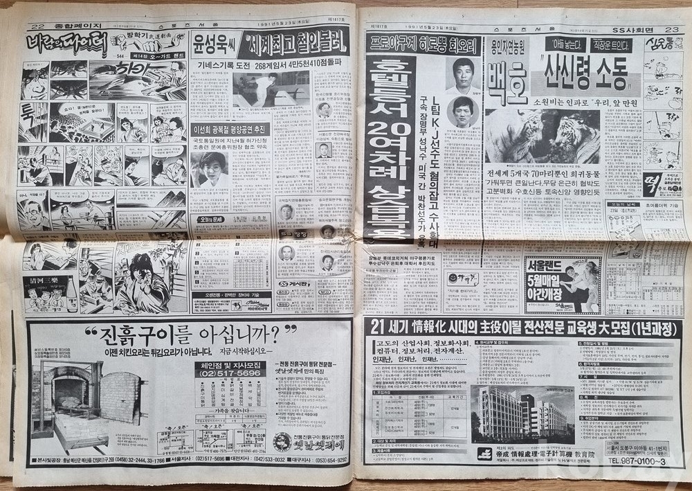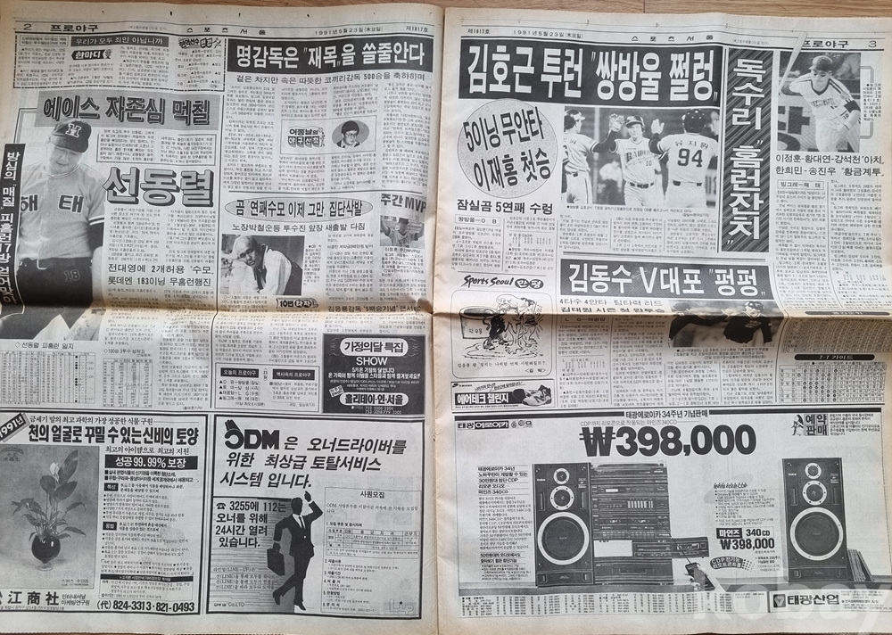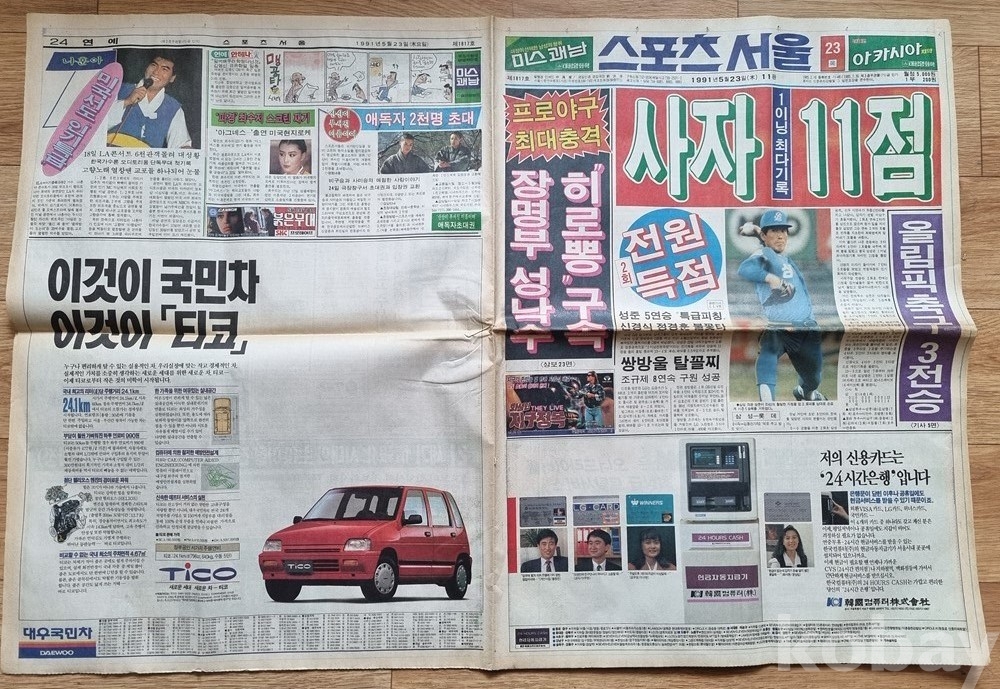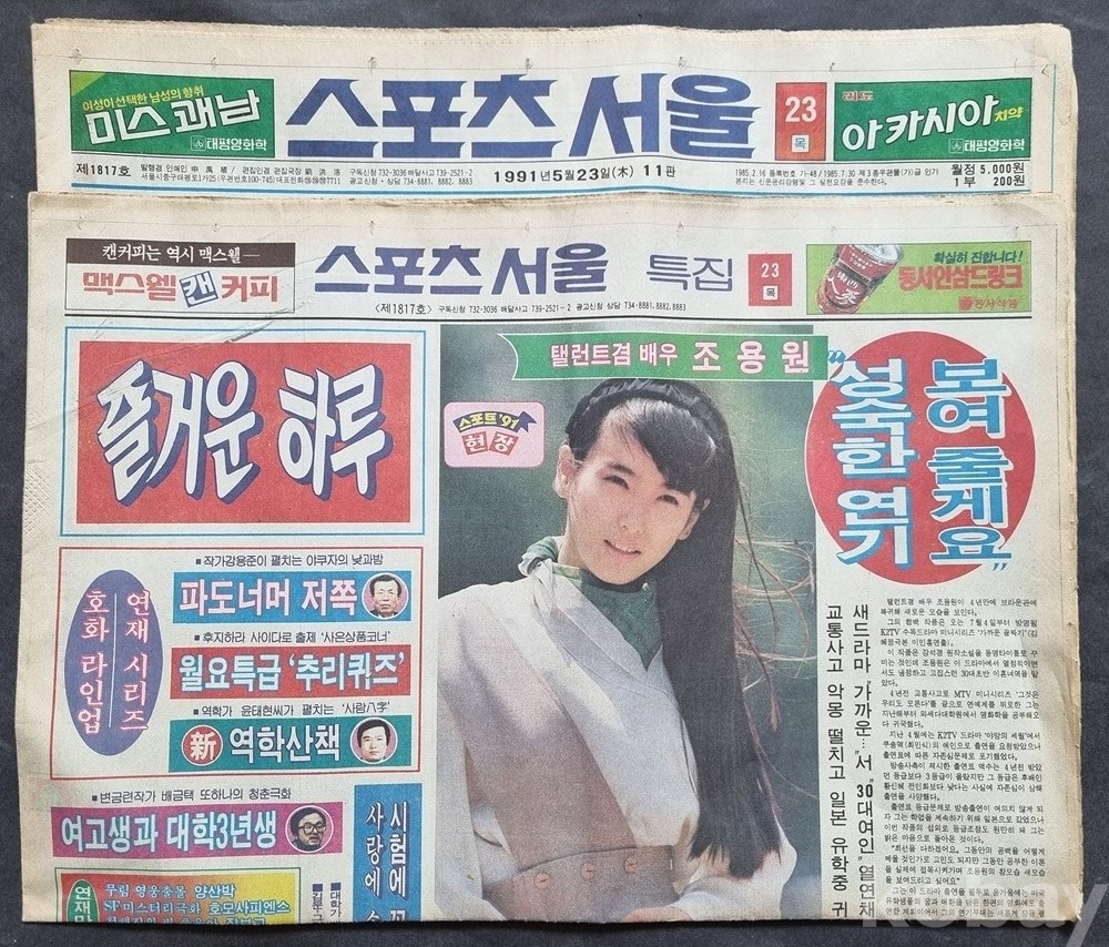 [출품 제안 정보]제목: [희귀/레트로] 1991년 5월 23일 스포츠서울 (조용원 특집/선동열/티코 광고 등)
