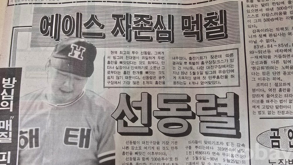 '무등산 폭격기' 선동열 선수의 기사가 크게 실려 있습니다.