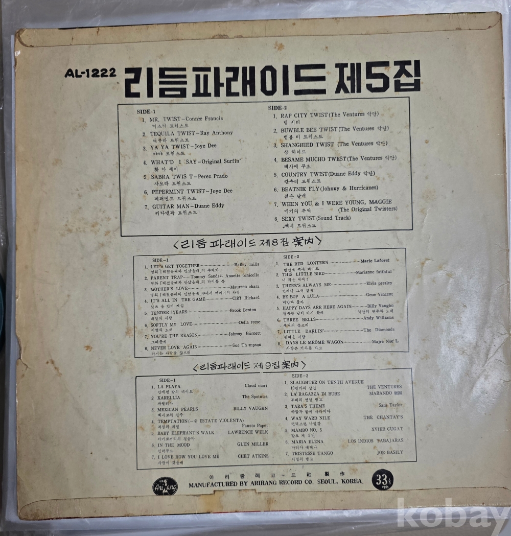 | 자켓상태 | VG : 주름, 접힘, 모서리 찢김 다수 | 음반상태 | EX : 재생에 영향 없는 가벼운 기스 존재 | 발매정보 | 알수없음 | 가사지여부 | 무 |
