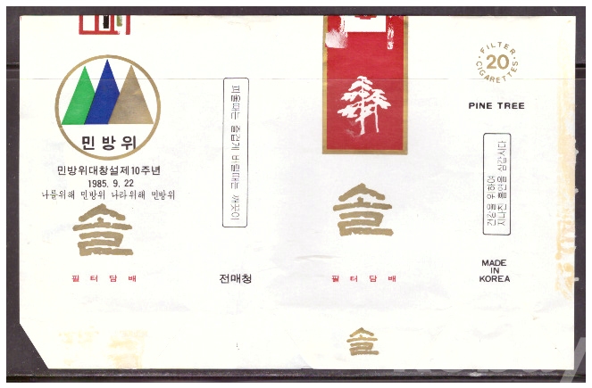 (담배포갑지) 솔 1985.9.22 민방위대 창설 제10주년