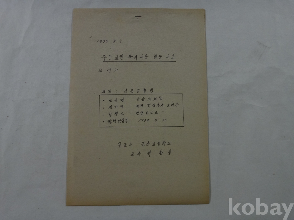 인공 호흡법 (중등교원 독서내용 발표자료, 교련과, 동산고등학교 교사, 1979년)