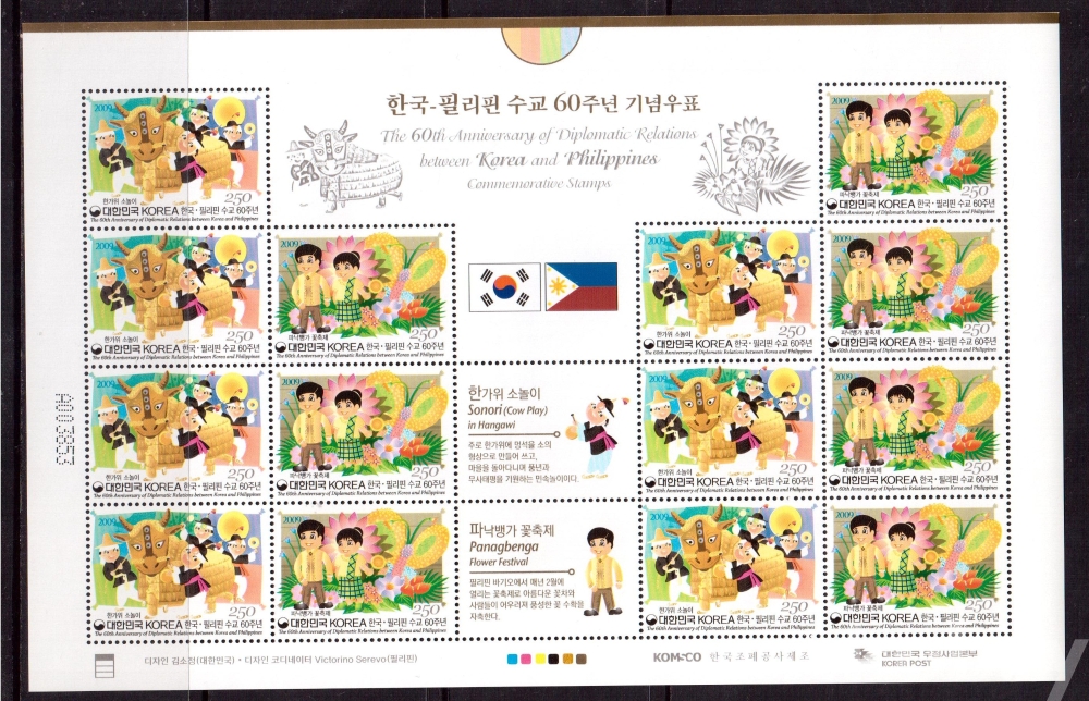 (한국전지) 2009.3.3 한국-필리핀 수교 60주년 sheet of 14 MNH