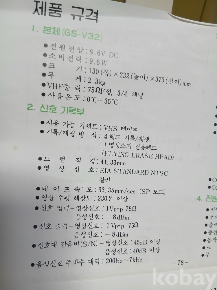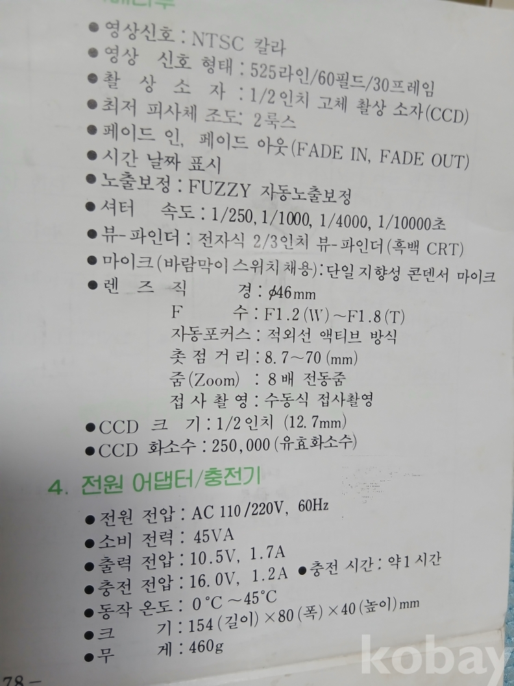 금성 초창기 비디오 카메라 사용설명서입니다