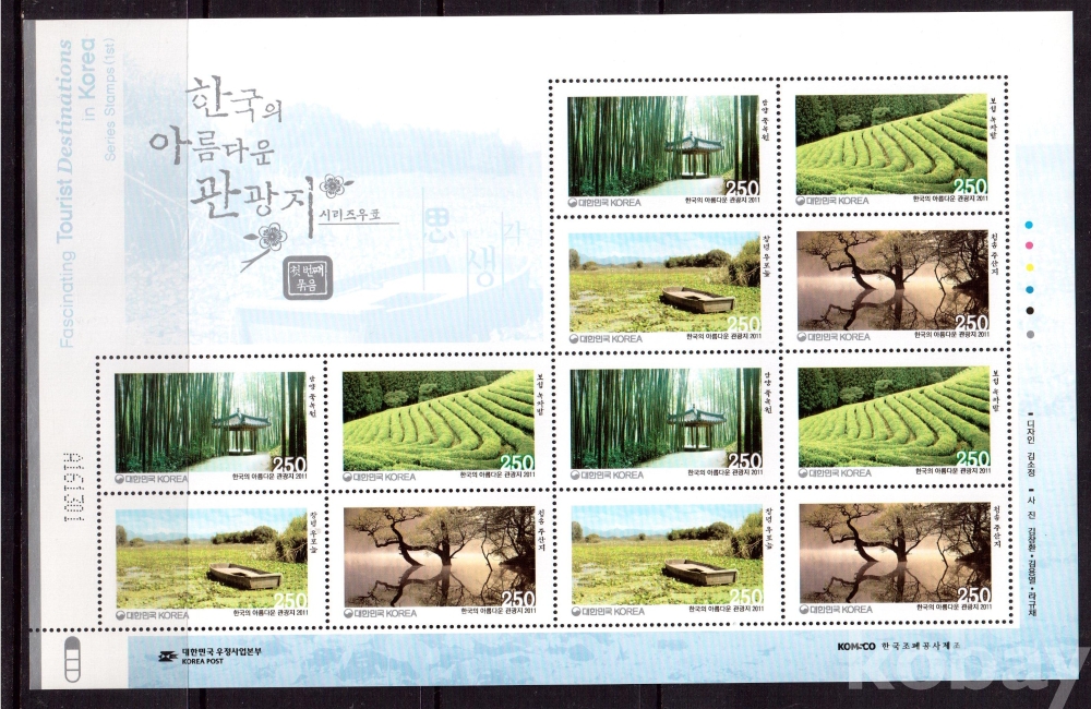 (한국전지) 2011.5.27 한국의 아름다운 관광지시리즈(첫번째묶음) sheet of 12 MNH