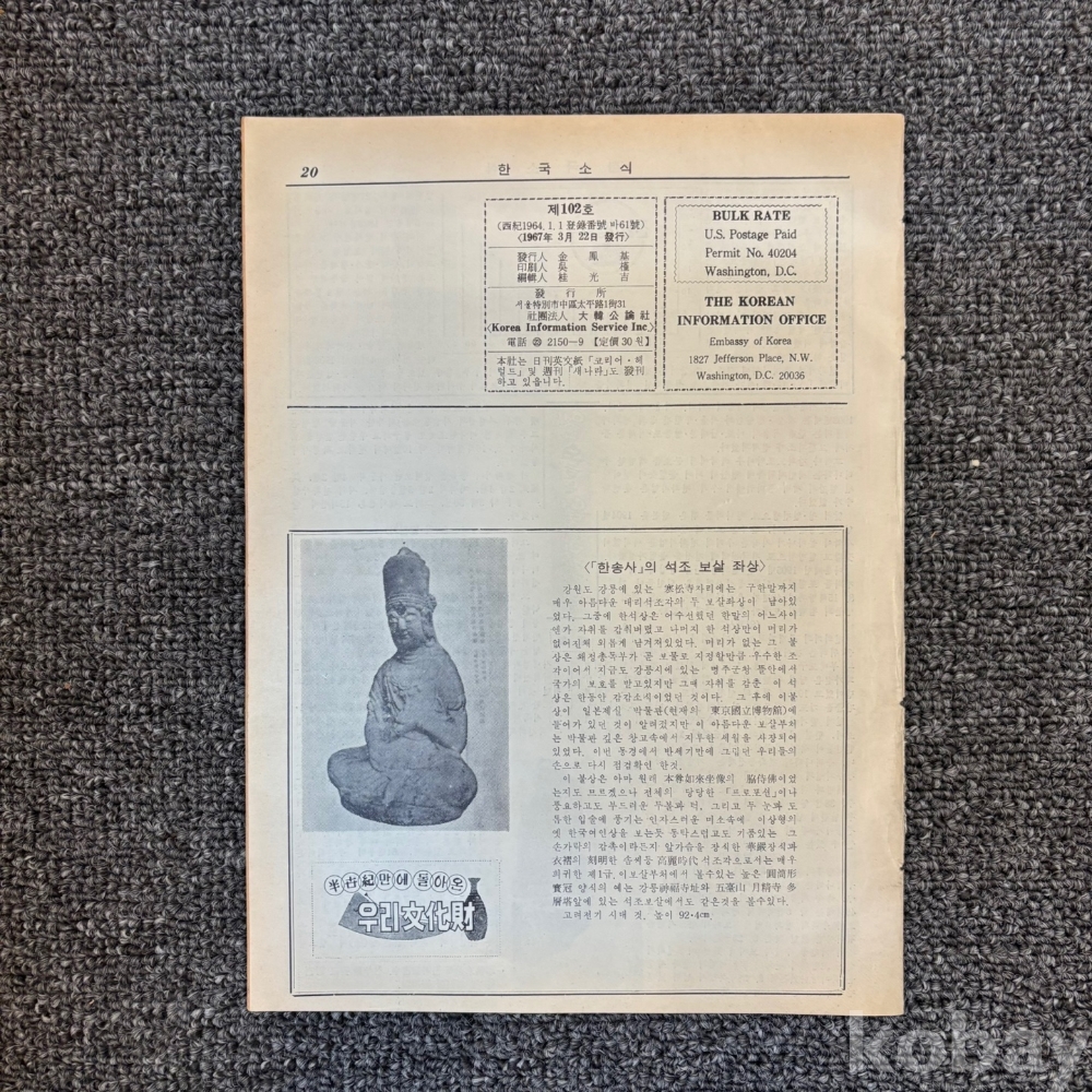 [희귀본, 한국현대사, 제3공화국, 전화 가입자] <한국소식 1967년 3월 22일 102호>, p. 20, 상태 중상급(사진참조)